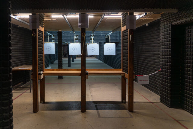 Naše 25 metrů dlouhá střelnice s pojezdovými terči vám umožní trénovat z jednoho ze čtyř samostatných palebných stanovišť. Perfektní volba pro jednotlivce i malé skupiny, které chtějí trénink na míru.