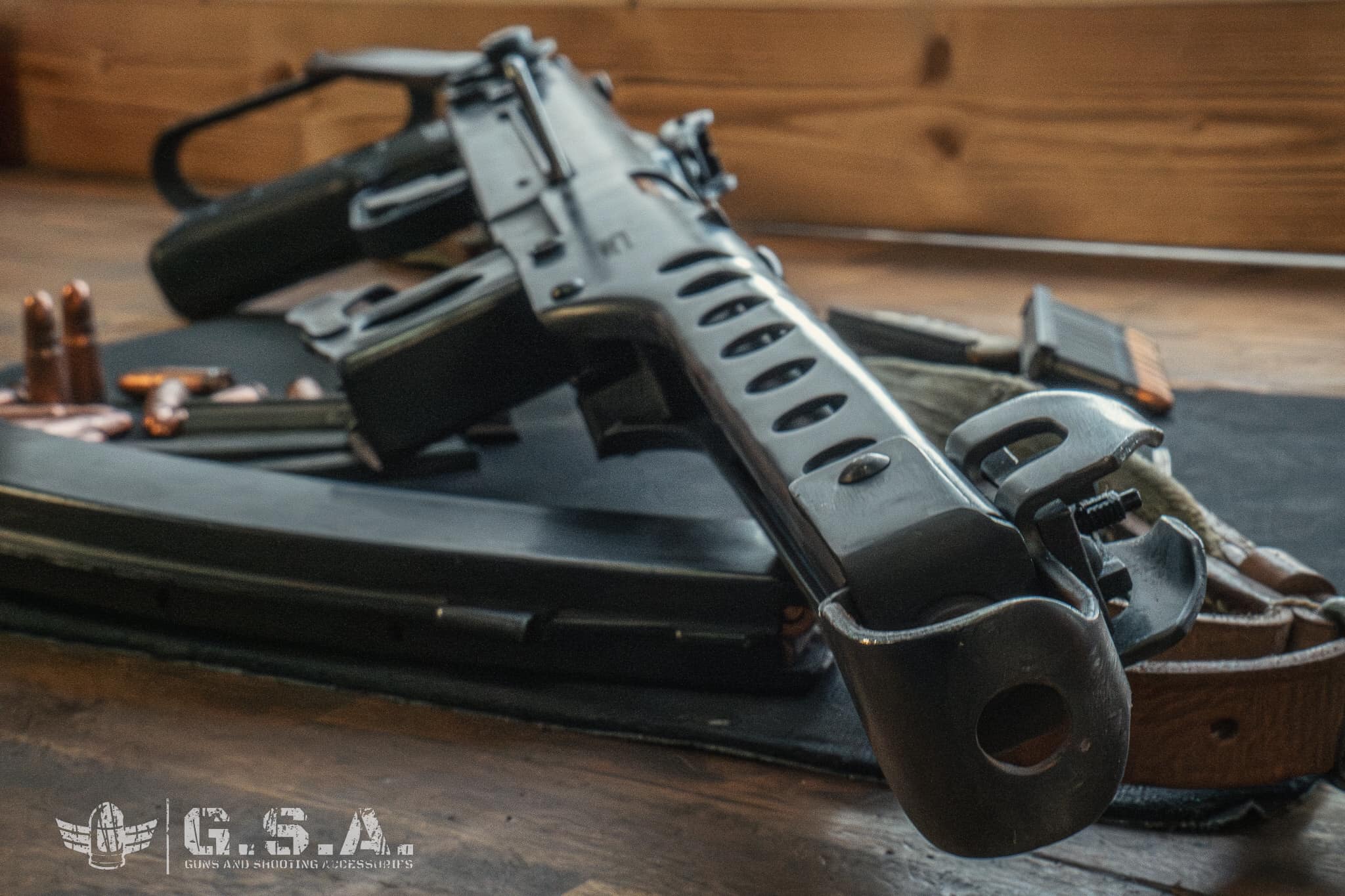 Kompaktní design – sklopná pažba pro praktický úchop, což ho činilo ideálním pro výsadkáře a osádky tankových jednotek.