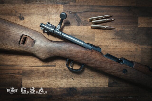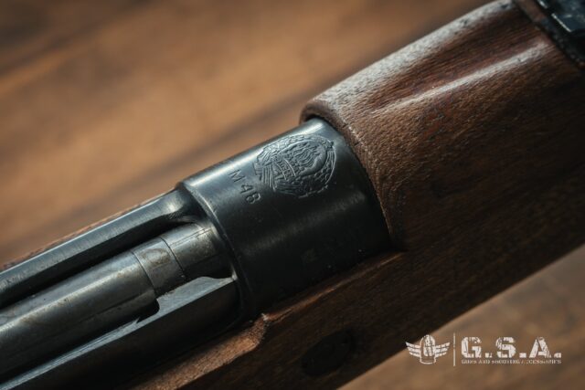 - Většina pažeb M48 je vyrobena ze silnějšího jilmového nebo bukového dřeva a v zadní části pažby má silnou nerezovou botku.